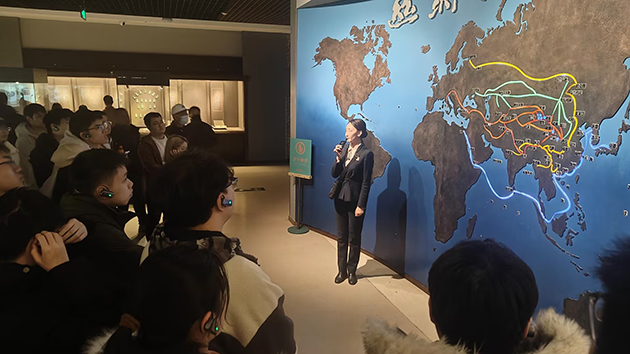 在八路軍蘭州辦事處紀(jì)念館酒泉路舊址大家參觀了八路軍駐甘辦事處與甘肅抗日救亡展覽和八路軍駐甘辦事處原狀陳列展覽,瞻仰了八路軍蘭州辦事處革命舊址,全面解了黨中央在這里宣傳民族抗日統(tǒng)一戰(zhàn)線,開展抗日救亡活動(dòng),輸送進(jìn)步人士到延安,指導(dǎo)和創(chuàng)建進(jìn)步團(tuán)體,營救紅西路軍失散人員等情況。在甘南路舊址參觀了中國工農(nóng)紅軍西路軍事跡展、紅軍聯(lián)絡(luò)處原狀陳列展,學(xué)習(xí)了中國工農(nóng)紅軍西路軍在征戰(zhàn)河西走廊期間,為打通國際路線、策應(yīng)河?xùn)|紅軍、策應(yīng)“西安事變”和平解決寫下可歌可泣的壯麗篇章。在甘肅省博物館絲綢之路文明、甘肅彩陶等展館,大家了解了絲綢之路的發(fā)展歷程、民俗文化,以及甘肅省深厚的人文歷史文化底蘊(yùn)和特色文化資源。