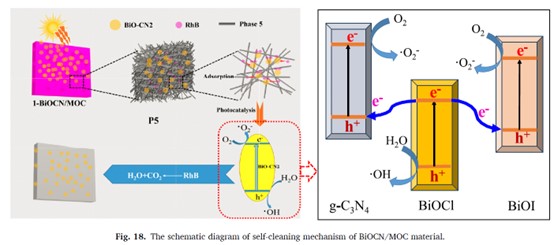 BiOCN/MOC材料自清潔機(jī)理示意圖