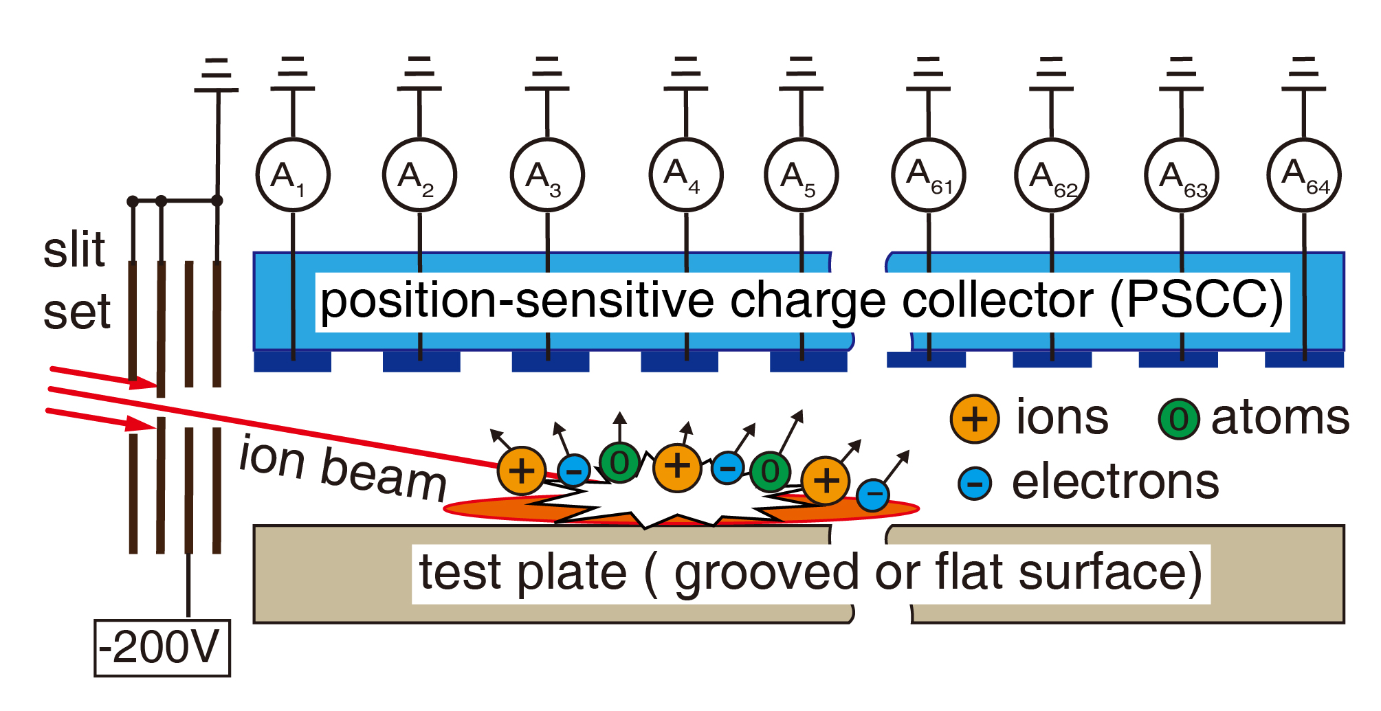 圖1:濺射離子電流分布測量。二次離子的電荷搬運是導(dǎo)致導(dǎo)向電場過早飽和的主要原因;溝槽結(jié)構(gòu)可有效抑制二次離子的電荷搬運