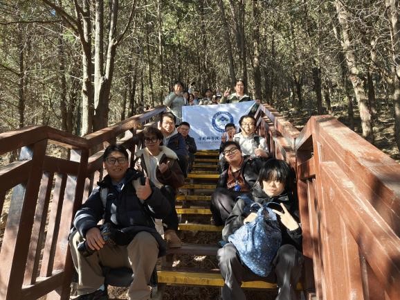 隊(duì)伍沿雁棲湖校區(qū)出發(fā),穿林越階,在陡坡與棧道交錯(cuò)間競(jìng)速前行。觀景臺(tái)極目遠(yuǎn)眺,京北山色盡收眼底。一路上,陡坡棧道考驗(yàn)?zāi)土?,峰頂遠(yuǎn)眺開闊胸懷,梵音鐘鼓沉淀初心。大家相互攙扶、彼此等待,用腳步丈量自然,用笑聲縮短跨學(xué)科的距離。高強(qiáng)度的徒步為新“鹽湖人”注入了堅(jiān)毅、協(xié)作、沉靜的集體底色。在這片自然與人文交融的天地間,大家紛紛暢談科研志向,分享求學(xué)初心?!暗歉摺辈粌H是為了望遠(yuǎn),更是為了“明志”——在高處審視自我,在廣闊中確立方向。有同學(xué)感慨:“科研之路正如登山,不在于一蹴而就,而在于持之以恒的積累與攀登。”